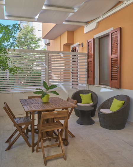 Situata al piano terra, la camera Grecale è composta da 2 stanze: una matrimoniale e l’altra matrimoniale o con letti separati. La camera ha il bagno privato ed una terrazzina.