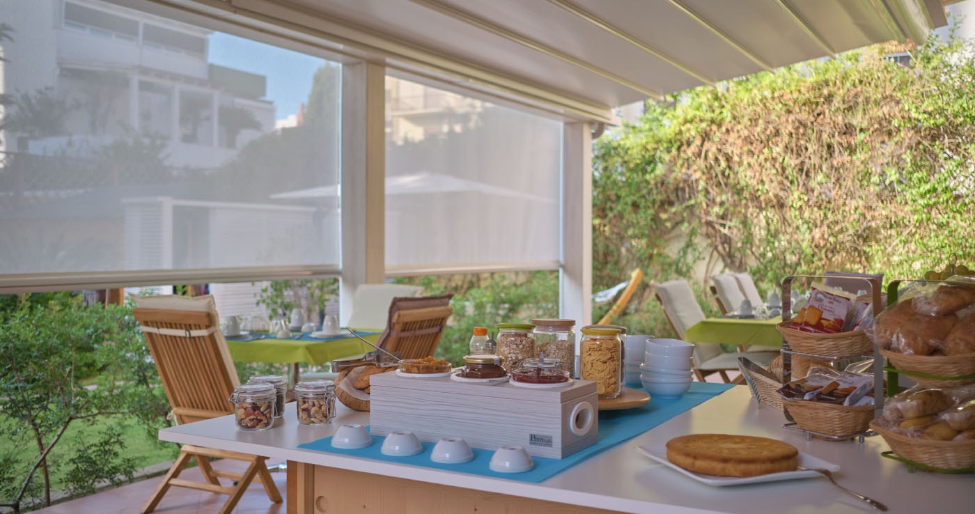 Nei mesi estivi (giugno, luglio, agosto e settembre) è servita nella luminosa terrazza che si affaccia sul giardino. A vostra disposizione: tè, caffè, latte o succhi di frutta, pane fragrante, biscotti, cereali e yogurt, frutta oltre a salumi e formaggio. Troverete anche squisitezze tipiche della cucina sarda che vi aiuteranno ad iniziare la giornata nel migliore dei modi.